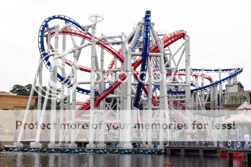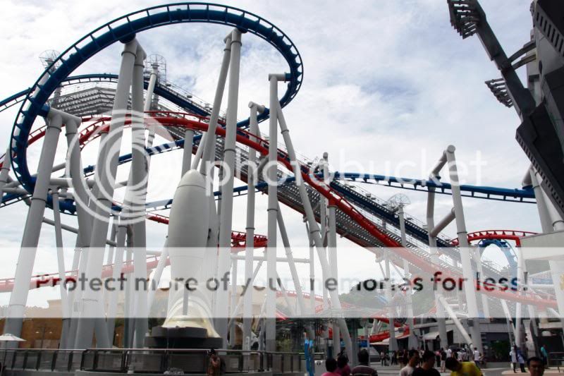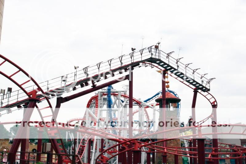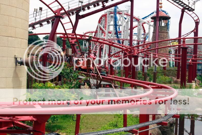 Sat on another roller coaster ride. It was thrilling but ain't the least bit scary. Fun! I even rode this roller coaster thrice. :}